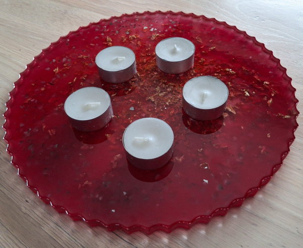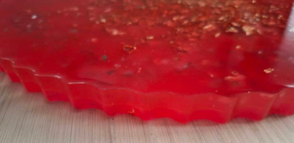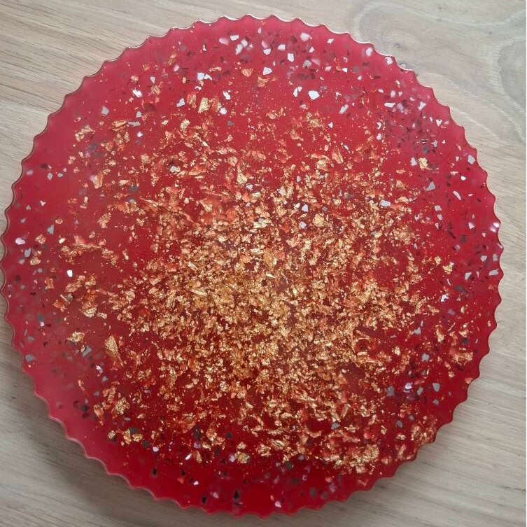 Elegancka taca wykonana z wysokiej jakości żywicy w intensywnym, czerwonym kolorze. Zachwyca głębią barwy i połyskiem, tworząc efektowny akcent w każdym wnętrzu. Idealna do serwowania kawy, deserów, przekąsek lub jako stylowa podstawka pod świece i dekoracje. Lekka, trwała i łatwa w czyszczeniu. Doskonała jako praktyczny element wyposażenia domu lub oryginalny pomysł na prezent.